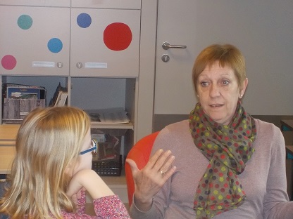 Het was beroepenbeurs. Wij begonnen bij de mama van Loek. Ik vond het leuk. Het was op dinsdagnamiddag. Ik wist een beetje antwoorden op de vragen. Als onze beurt eindigde kwam er een nieuw groepje en moesten we weg.
